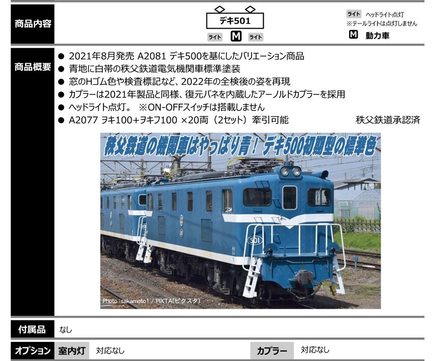 MicroACE A2085 秩父鉄道 デキ501 (青)