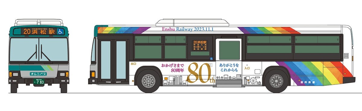 為紀念創業80週年,一列列車和一輛巴士將採用「80週年」標誌和彩虹圖案進行包裝,並從2023年5月起作為包裝車輛上市。