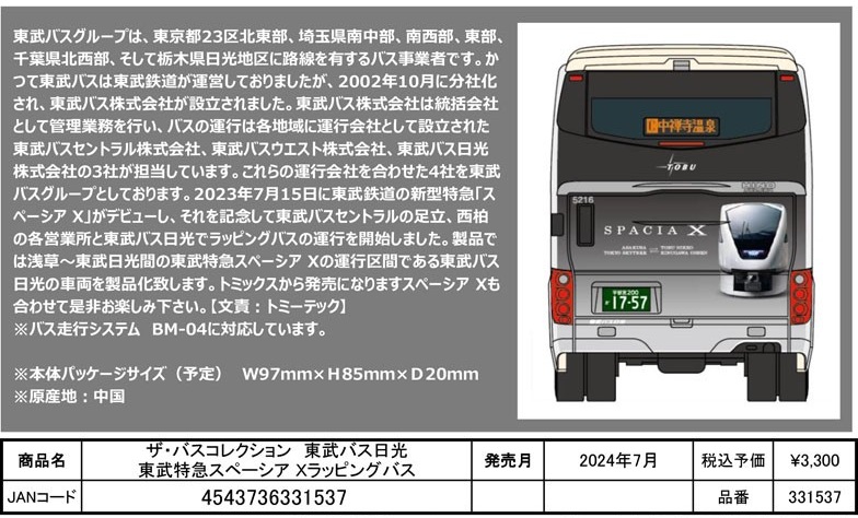 Tomytec (331537) 東武巴士 日光東武特快 Spacia X 環繞巴士