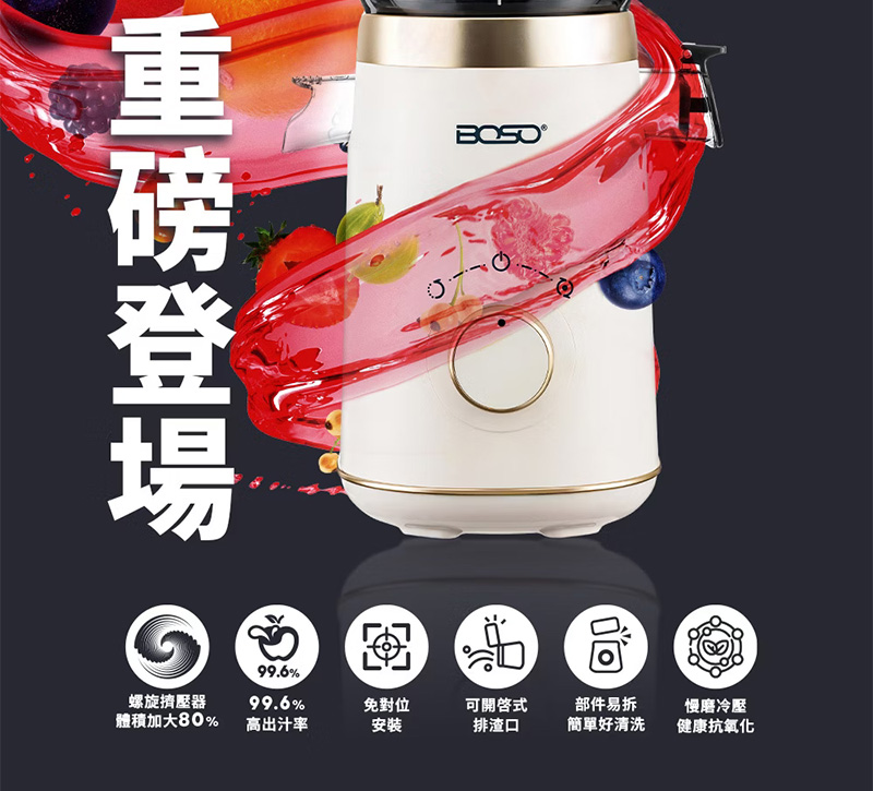 商品名稱:BOSO 鮮萃纖Max 超大口徑冷壓慢磨果汁機