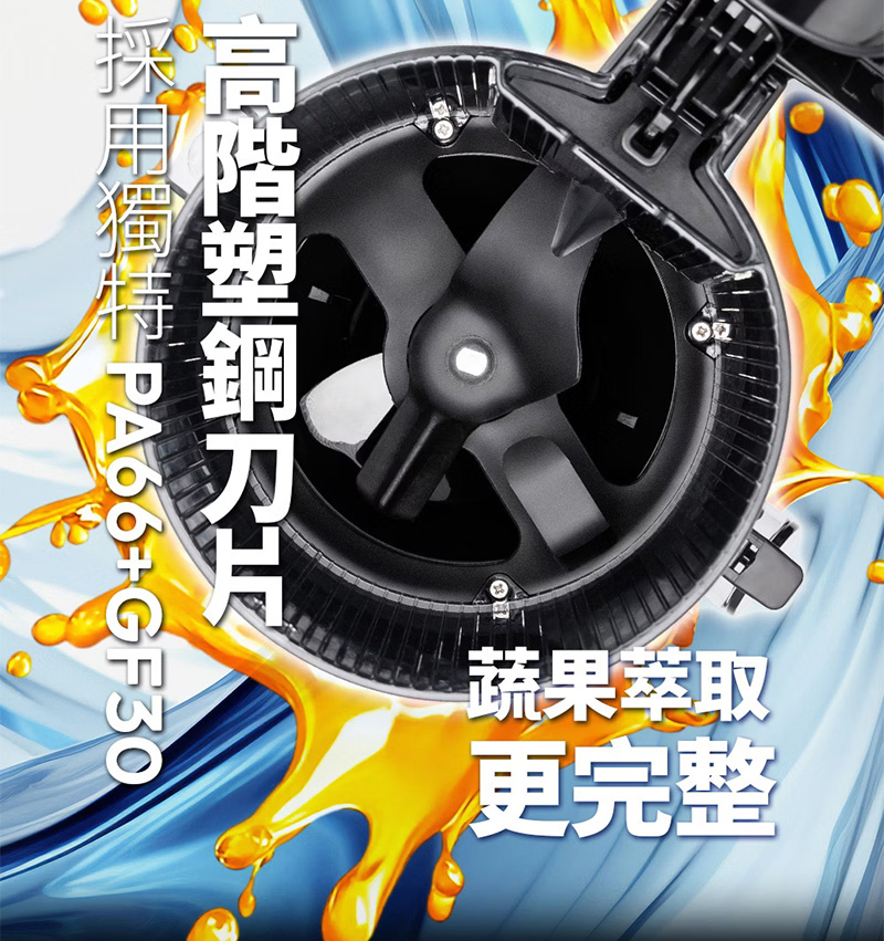 果汁杯、果渣杯:AS/撥汁器:POM/食材破碎刀:PA66+30%GF