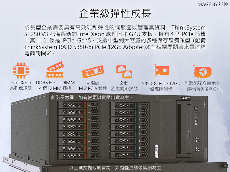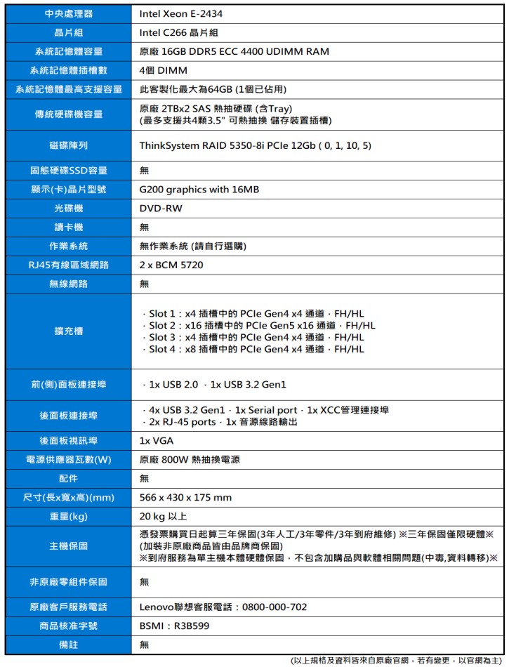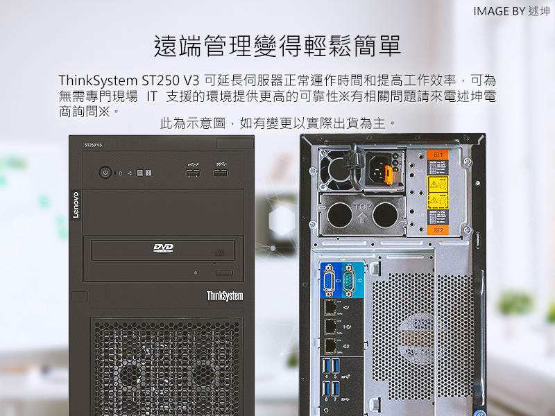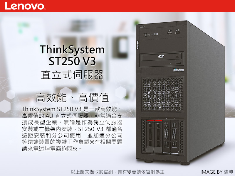 產品編號:Lenovo ST250 V3 (E-2434/16G/2TBx2/800W/FD)